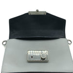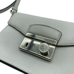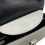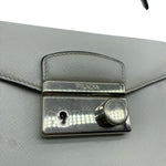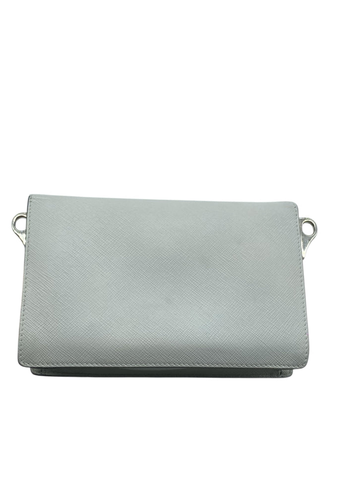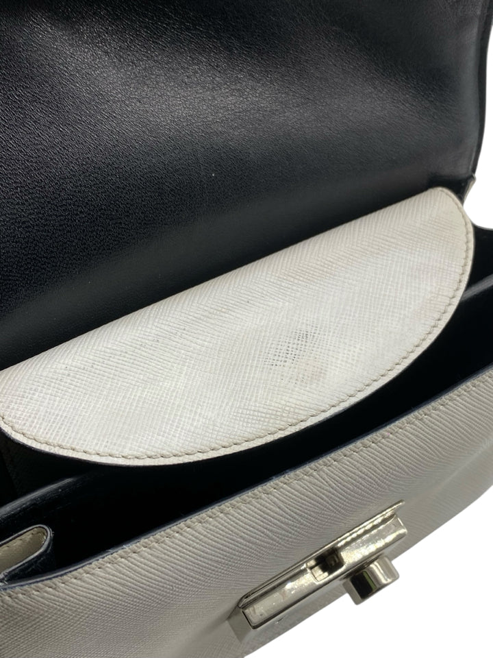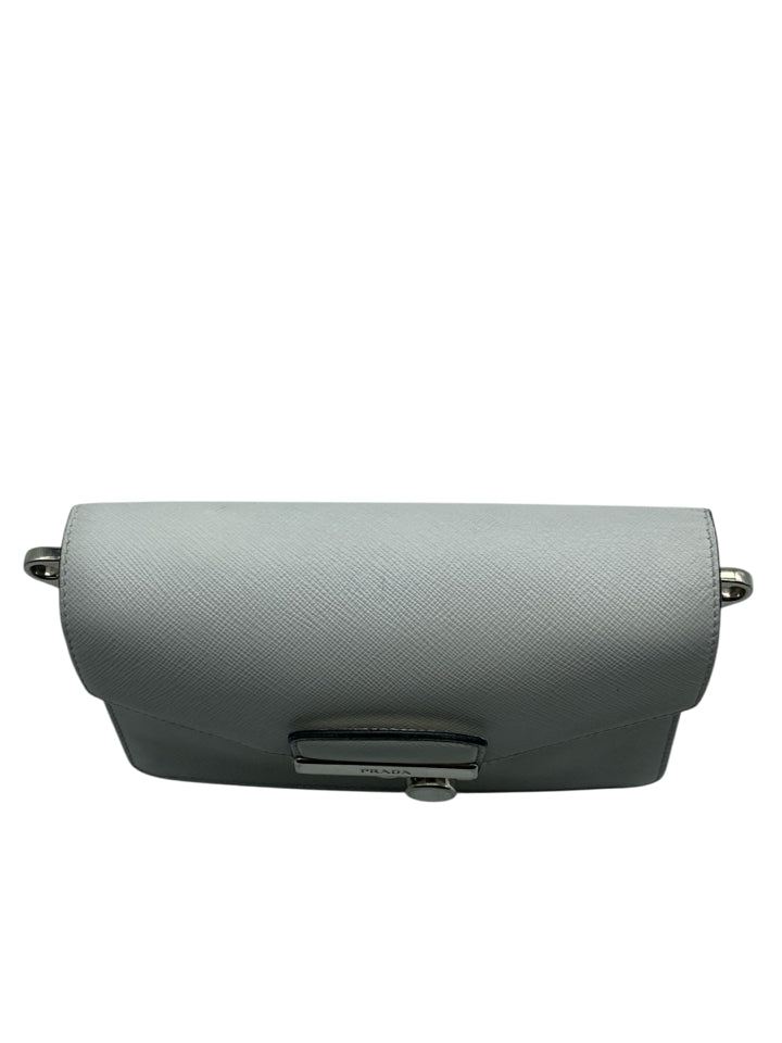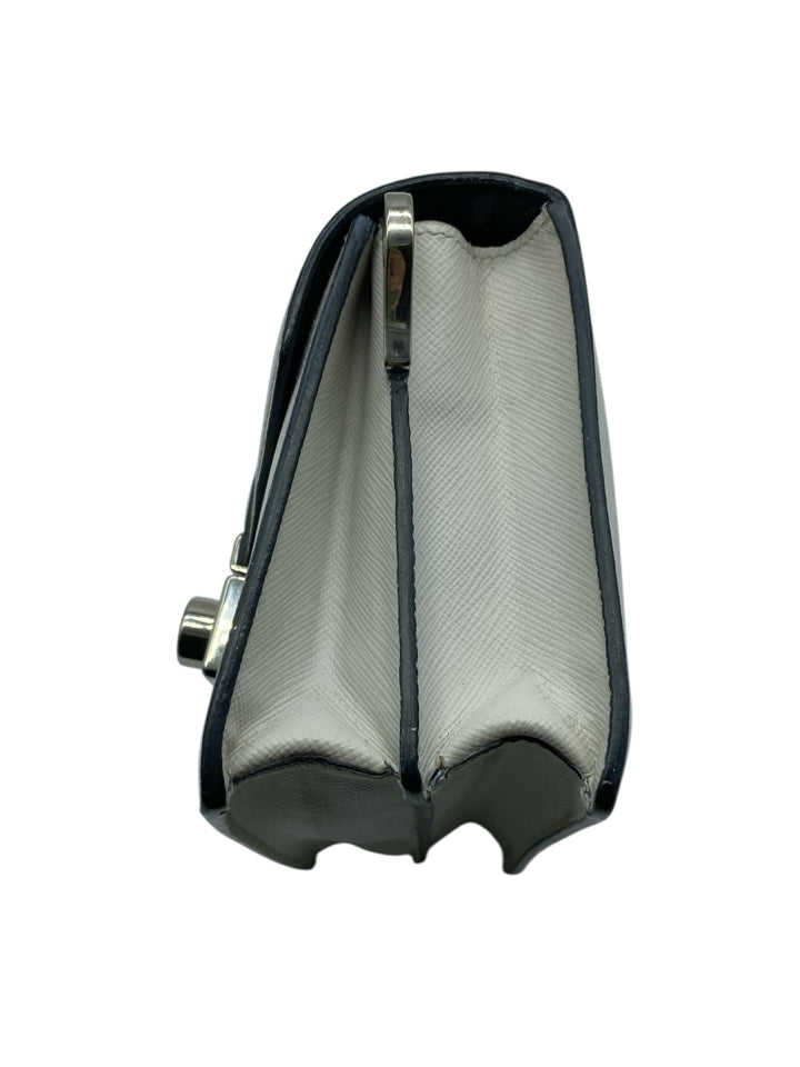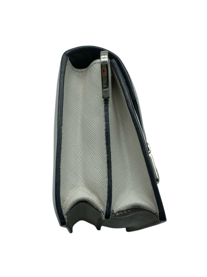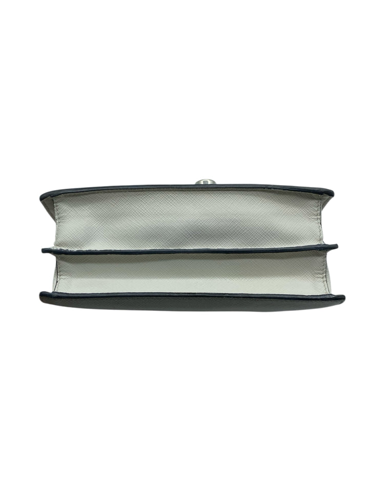 AS IS Prada Saffiano Leather Mini Crossbody in as is condition. Marks throughout leather, wear on corners, scratches and marks on interior, scratches on hardware, and slight warping & marks on strap (see pics). Measures approx. 7 x 2.5” x 4.5”. Strap drop measures approx. 20". Includes authentication certificate. (ah)