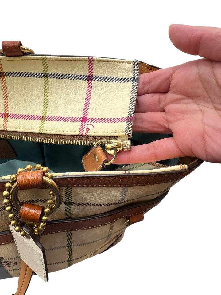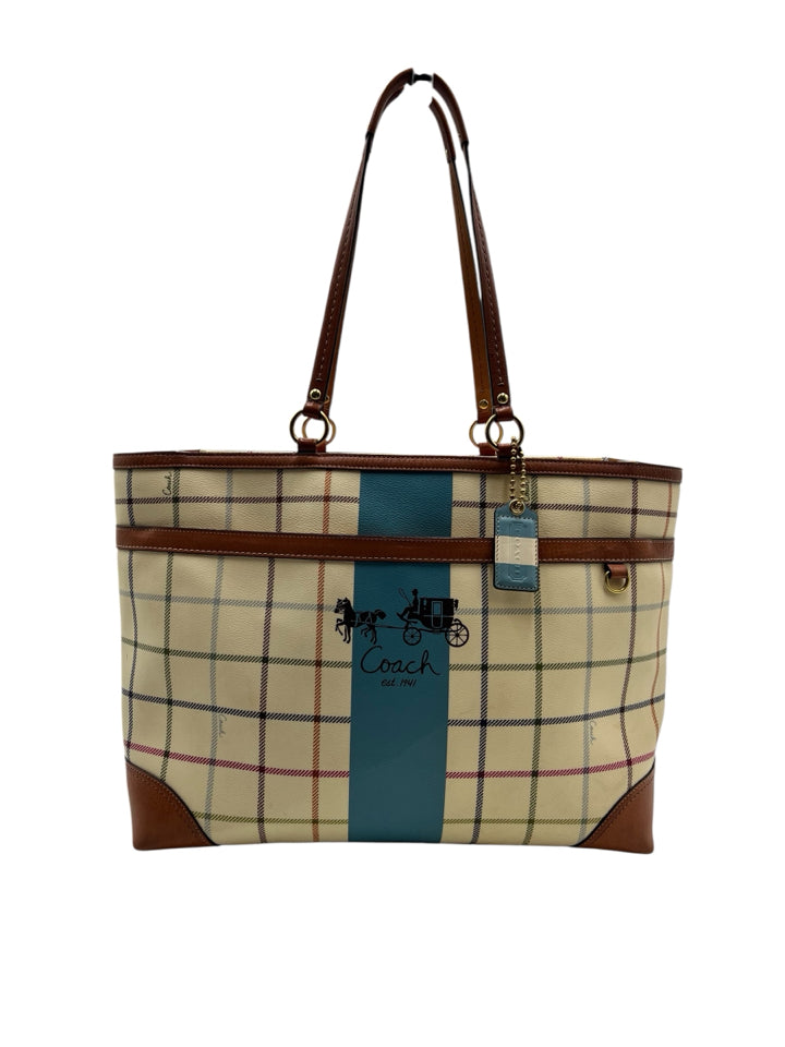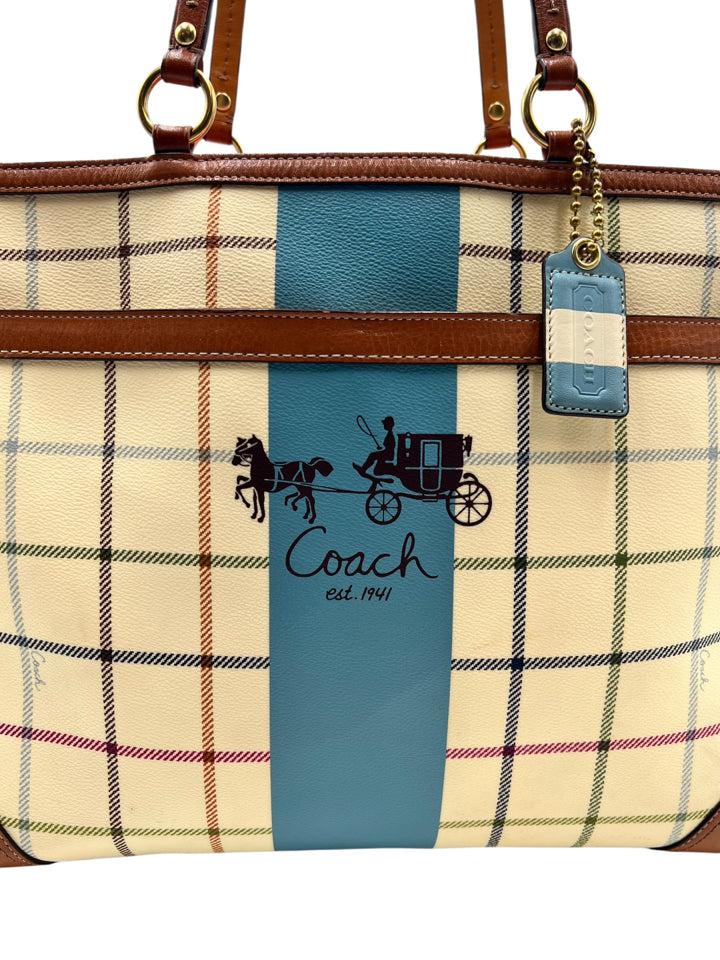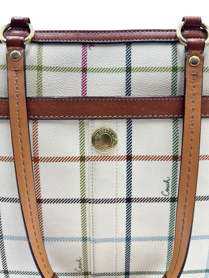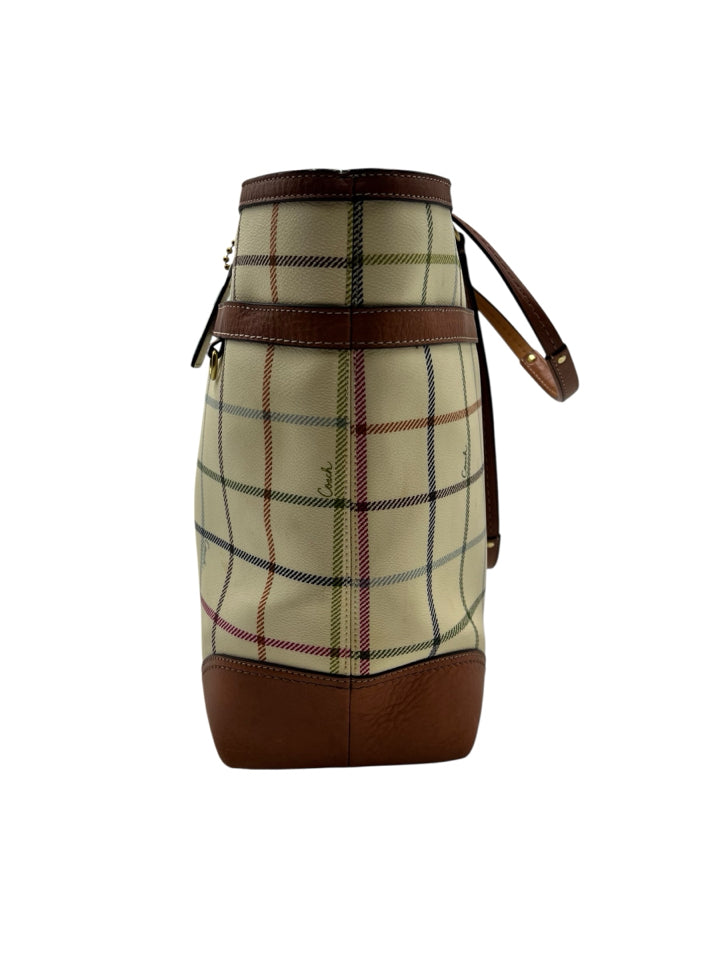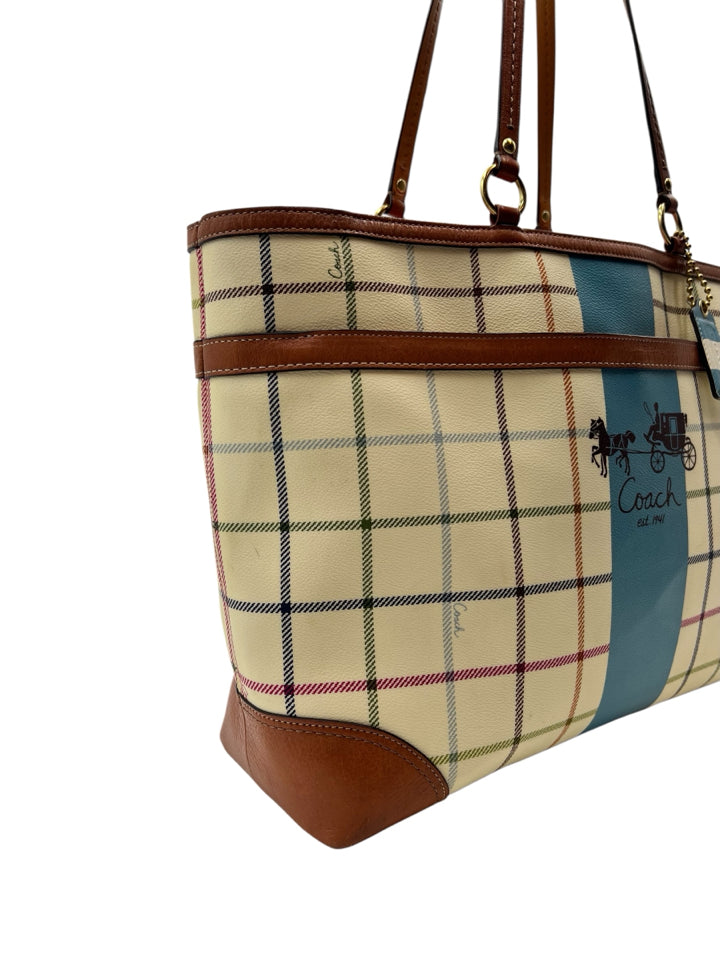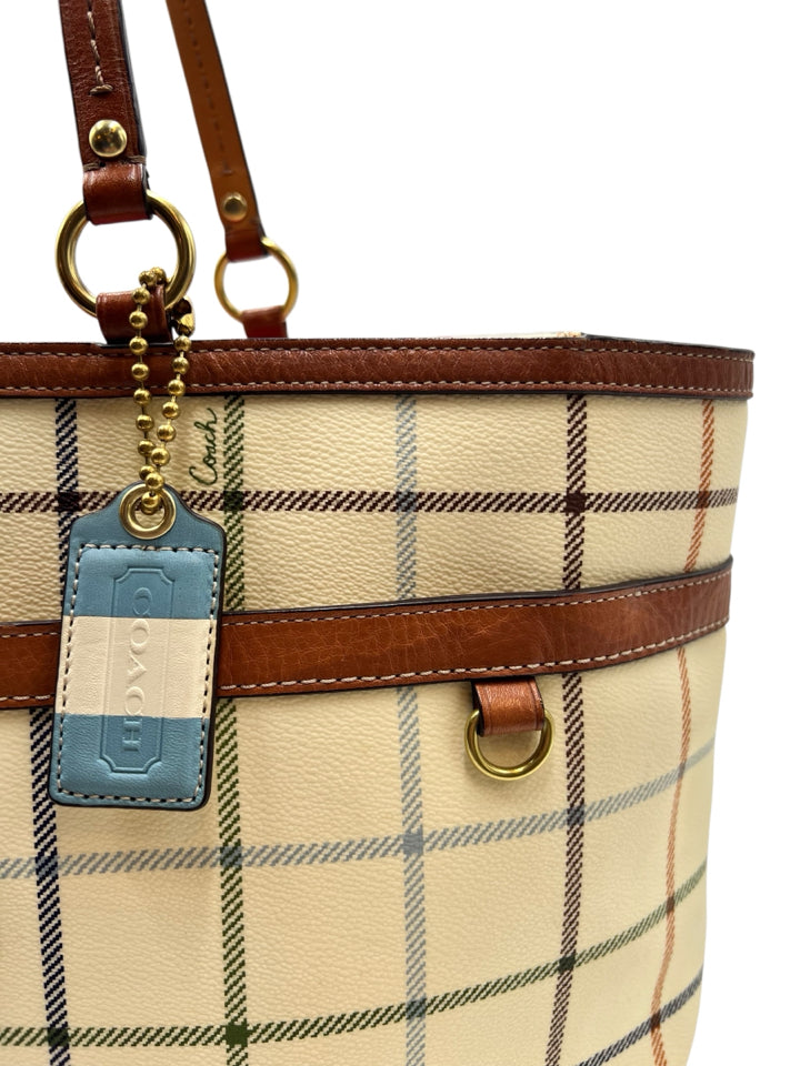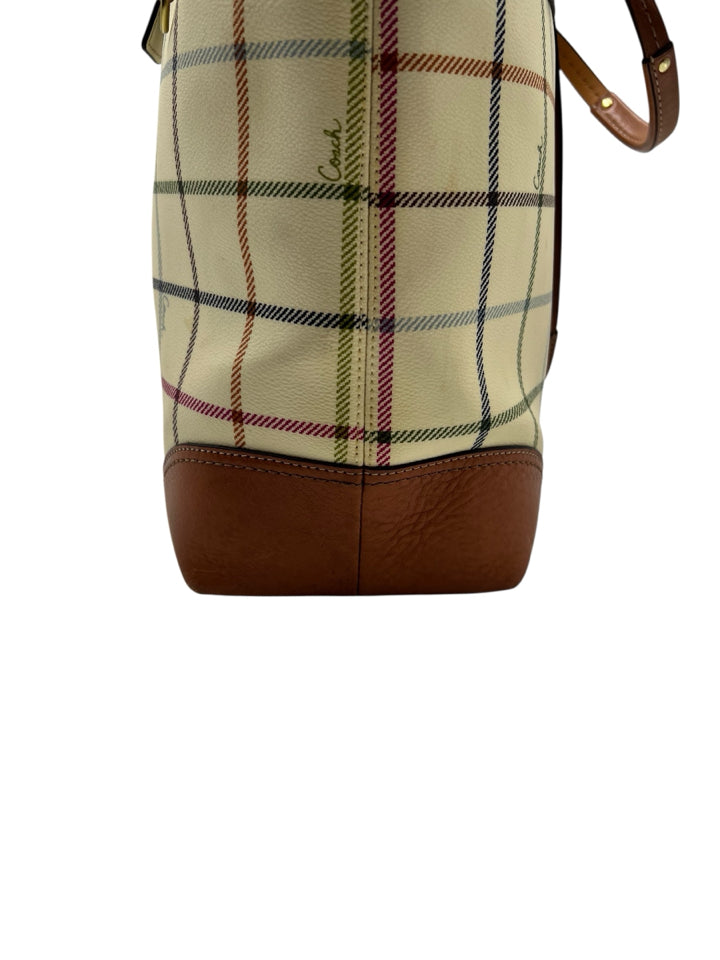 Coach Cream Heritage Tattersall Tote Bag Purse