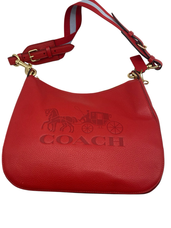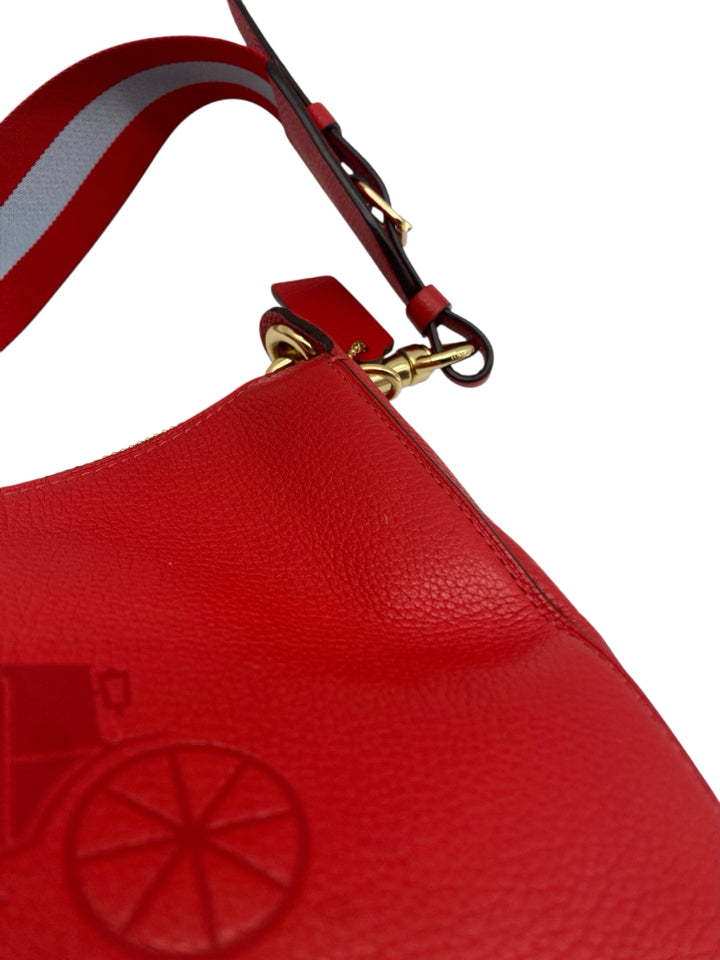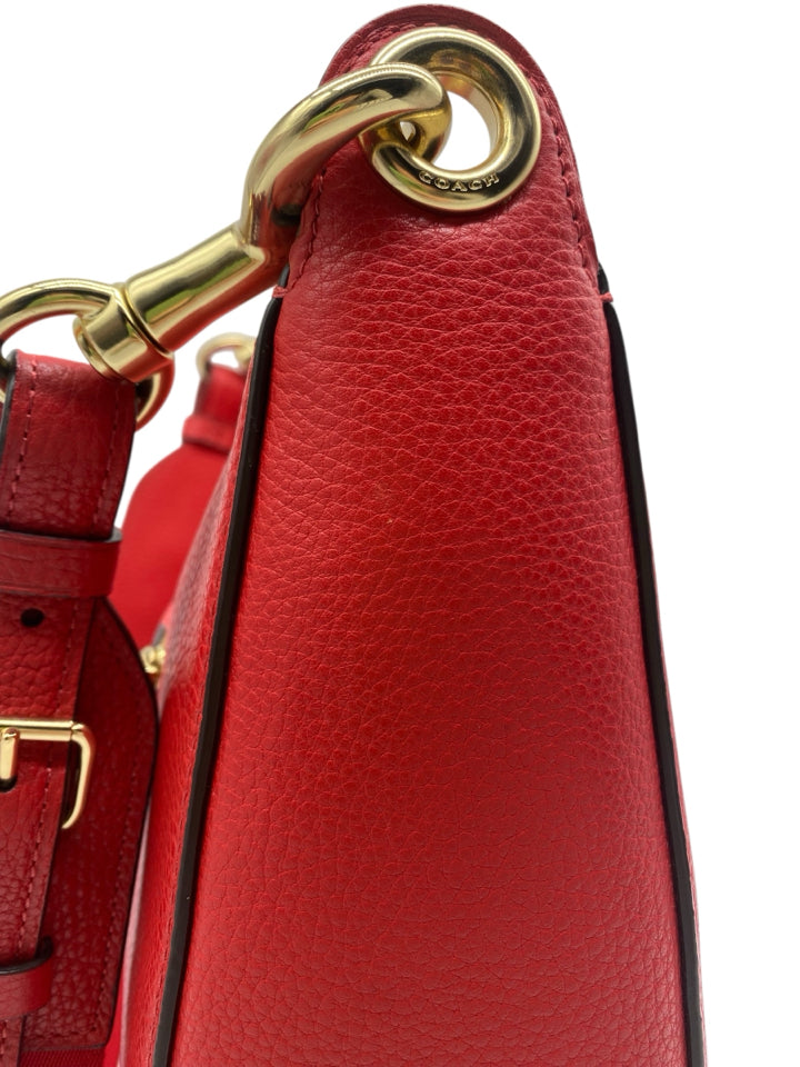 Coach Red Pebbled Leather Jes Hobo Shoulder Bag Purse
