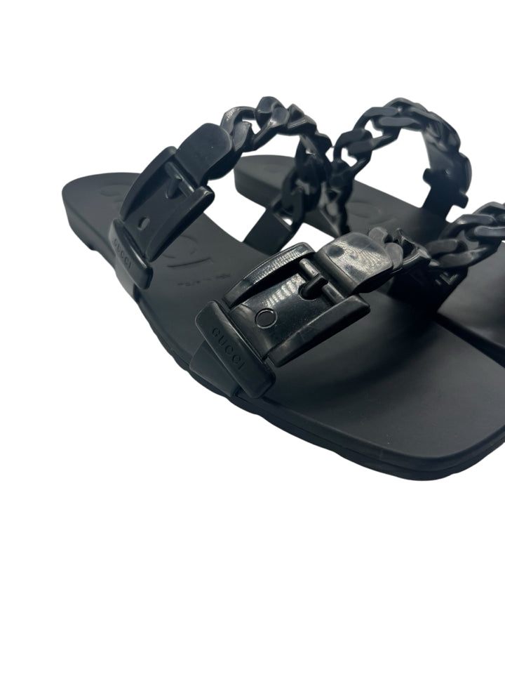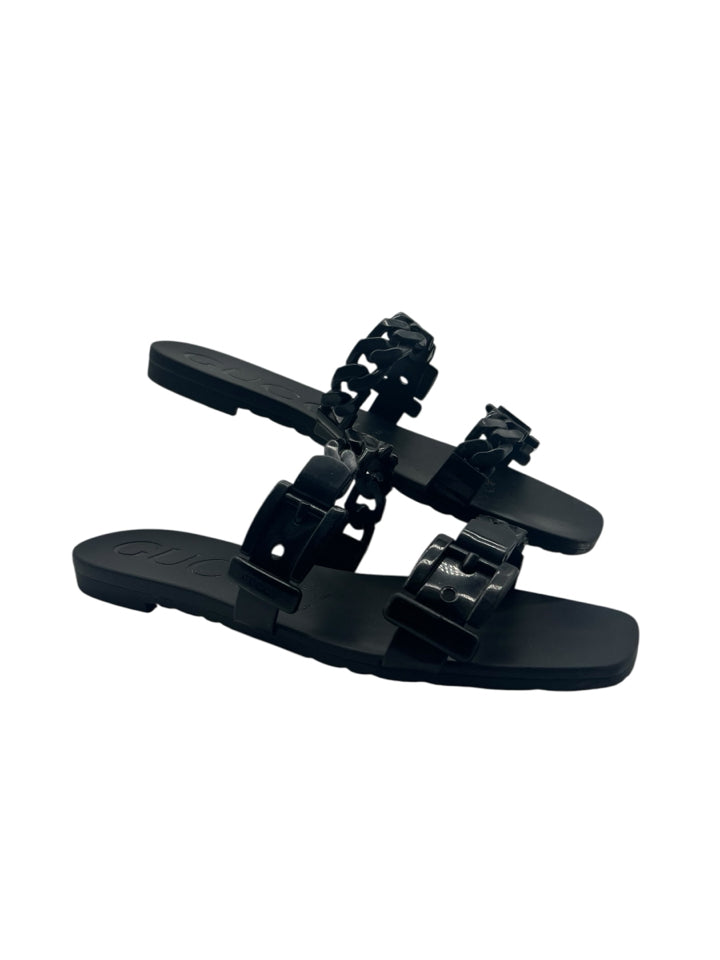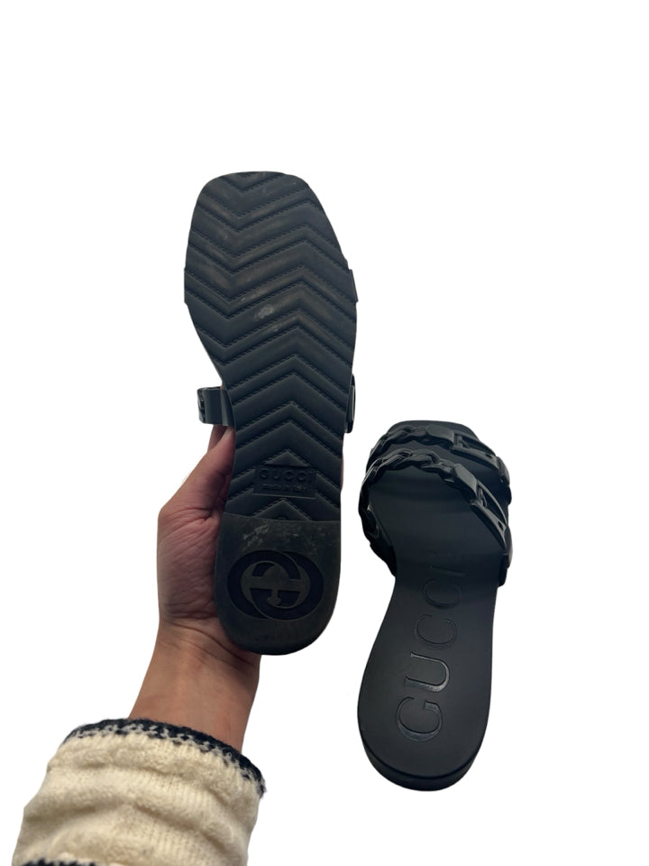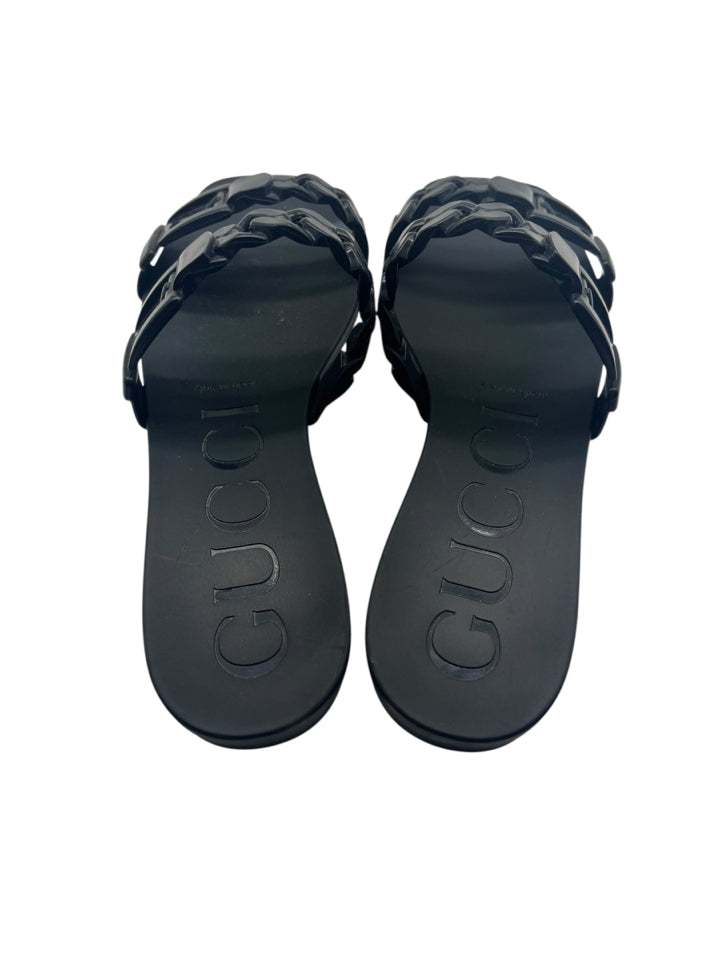 Gucci Black Rubber Buckle Size 37 ~ US 7 Women's Shoes