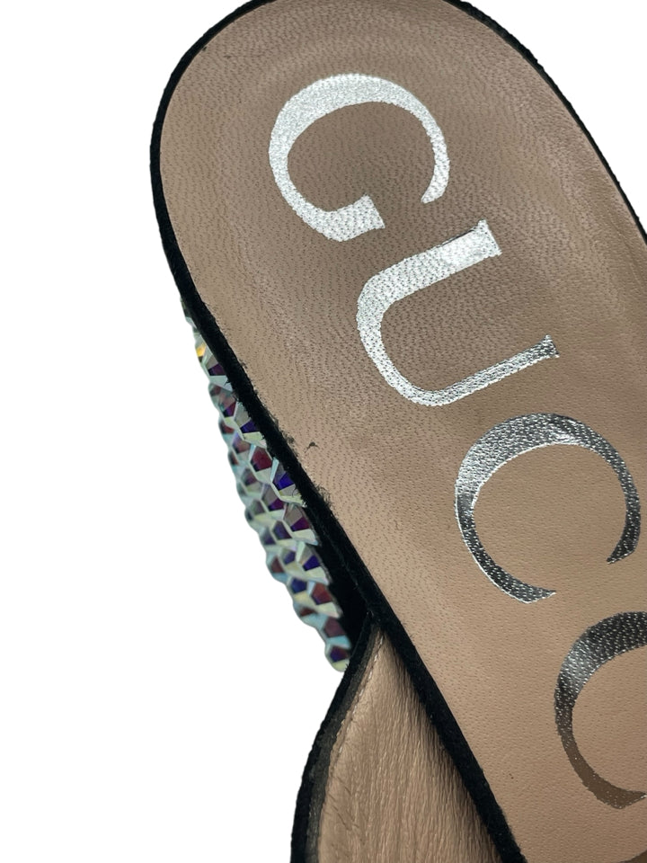 Gucci Embellished Suede Mules Women's 37.5 = US 7.5