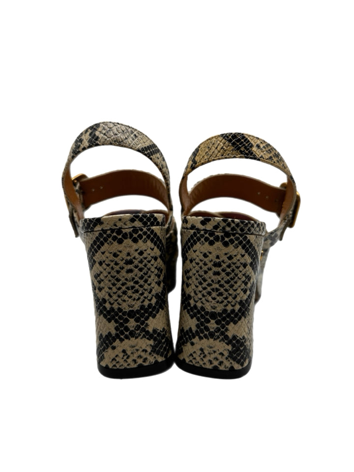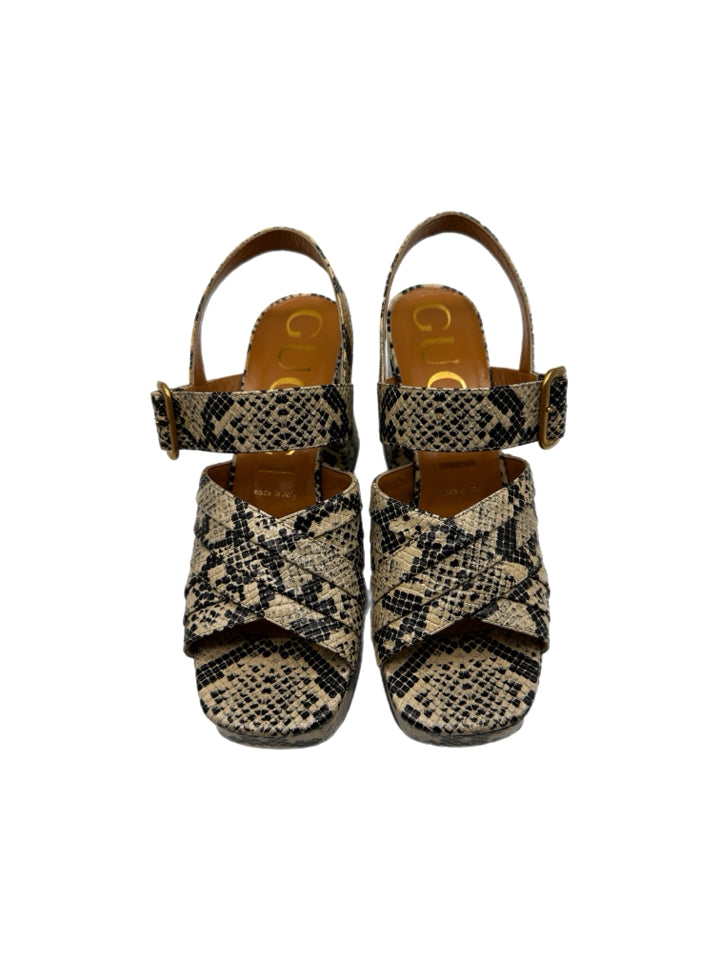 Gucci Python Embossed Platform Heels in like new condition. No visible damage or wear to the outer or inner shoe. Very minor creasing to straps. Insole measures approx - 9". Platform Height - Heel~ 4" x Ball~ 1.5". Includes dustbag. TB