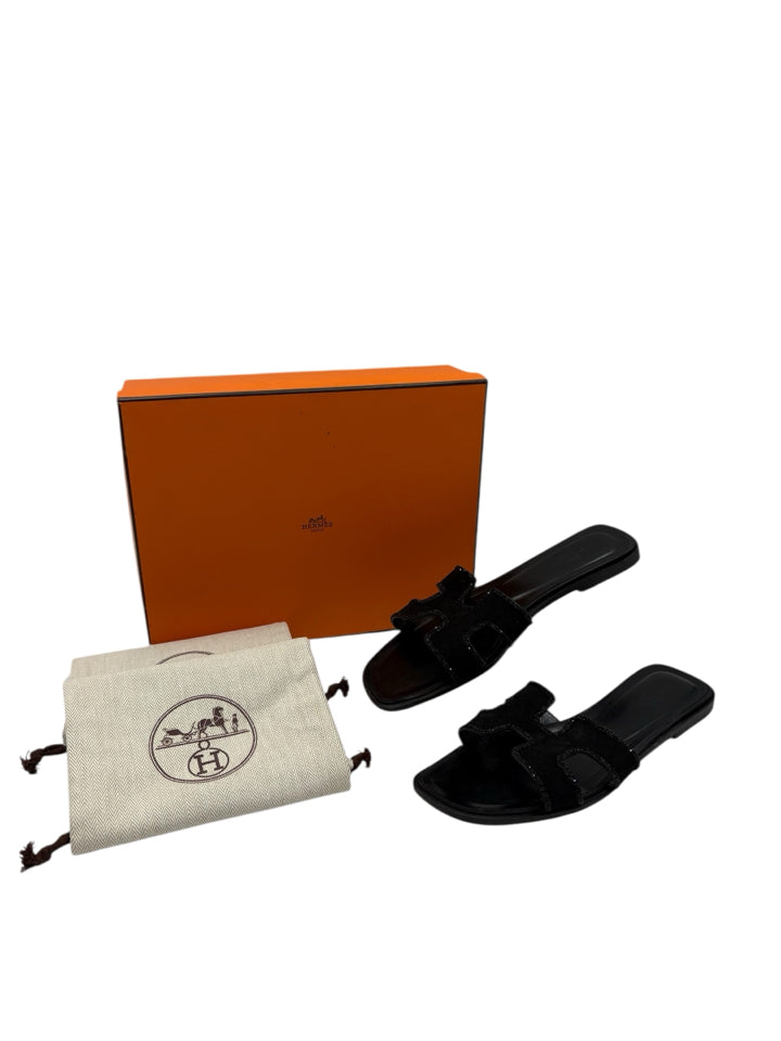 Hermes Black Oran Sandal Women's Size 39.5 US 9.5