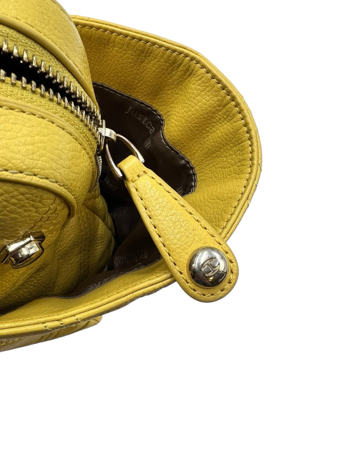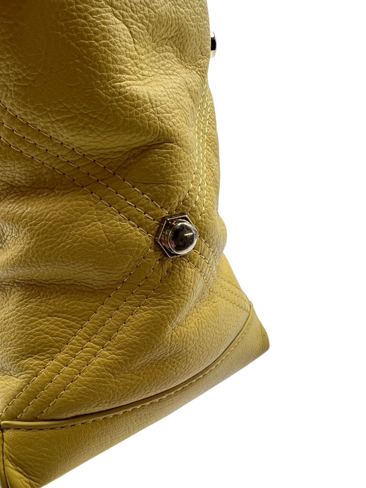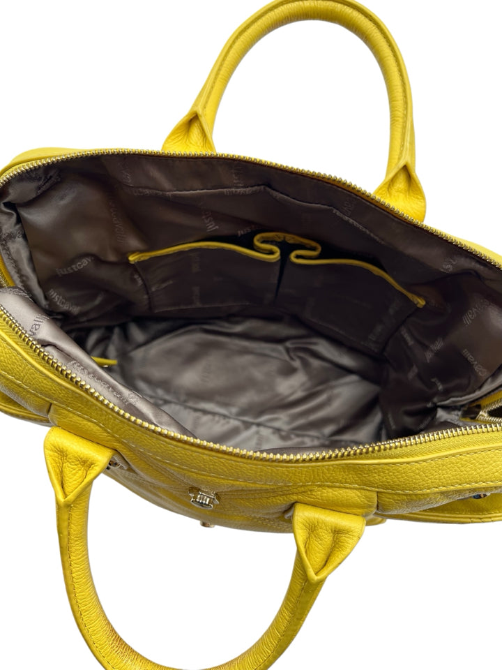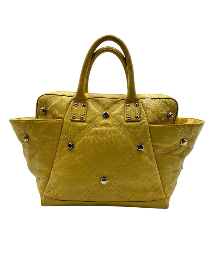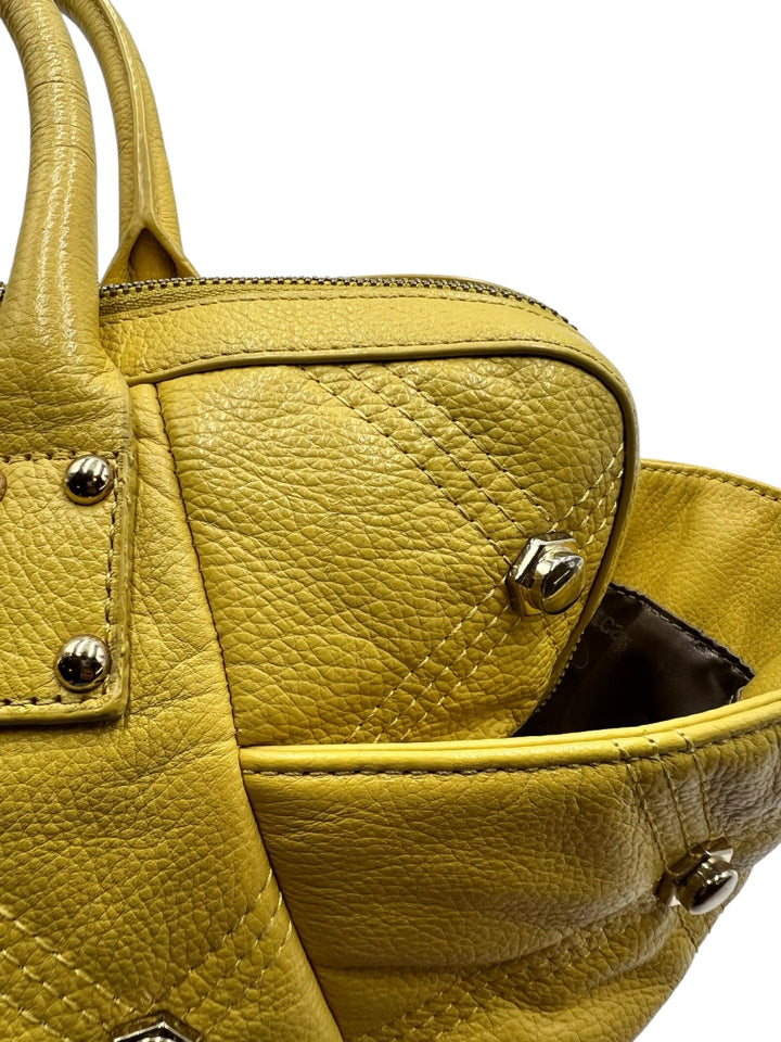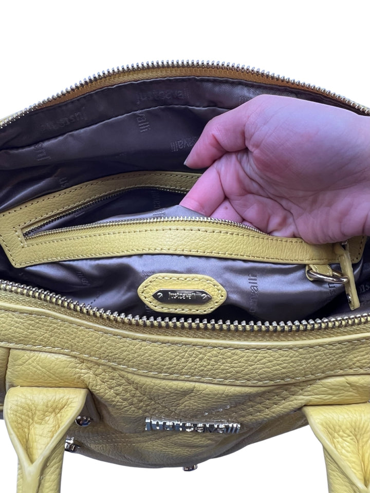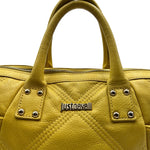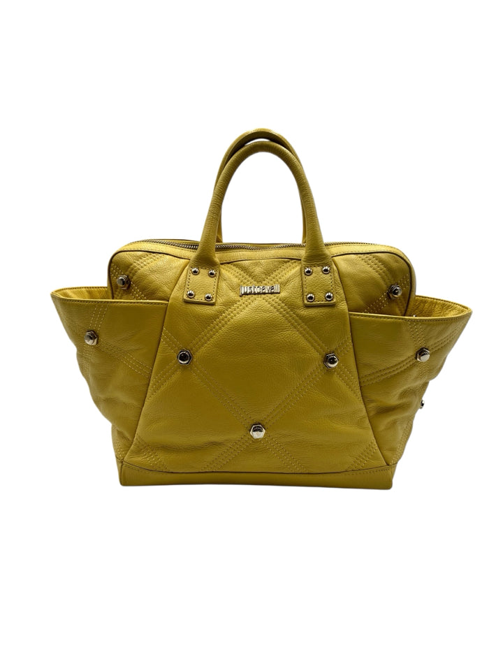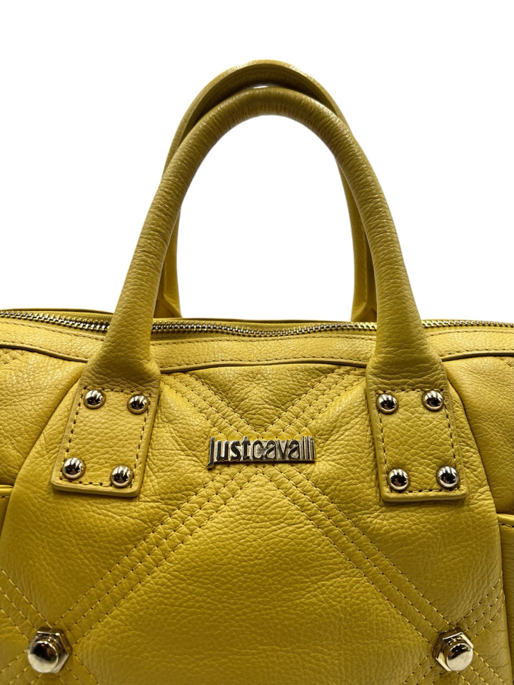 Just Cavalli Yellow Studded Leather Top Handle Purse