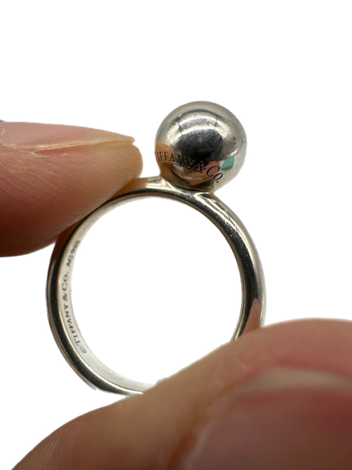 Tiffany & Co. Hardwear Ball 8mm 925 Sterling Silver Women's Size 4 Ring in good condition. Microscopic scratching and wear to silver band and extremely tiny chip to ball (see images). Includes Dustbag and Box. TB