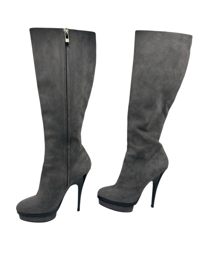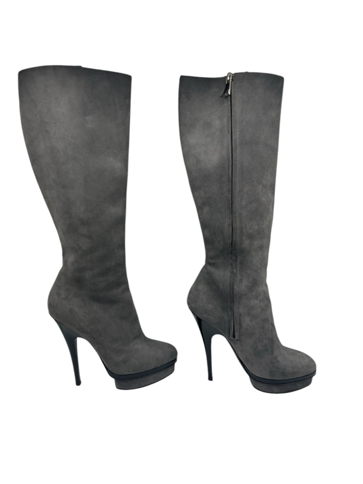 YSL Grey Rive Gauche Suede Boots Women Size 8